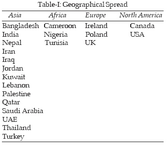1, the number has increased to 133 in 2005 (an increase of over 300%). Initially the authors from 10 countries were involved. In 2005 the number increased to 22. The geographical spread of these countries is as wide as the four continents. Fourteen countries in Asia, majority being from EMRO region, three countries in Africa, three in Europe and two in North America have sent their manuscripts. (Table-I). Online submission of articles has also modestly increased (12%) from within the country during this period. The practice of online review has also been started.