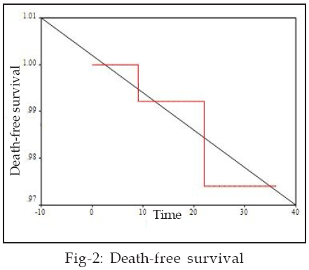 Clinical follow-up: Clinical follow-up data were obtained from the hospital records or telephone contact and/or reviewing them in the out-patient clinic. All patients were followed for 246.4 month (12 to 36month); the end point was MACE (major adverse cardiac event).MACE was defined as Death, MI, Coronary revascularization (CABG or PCI).