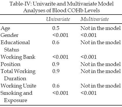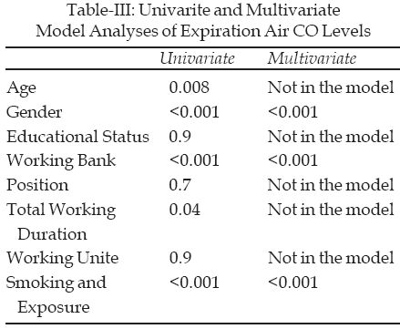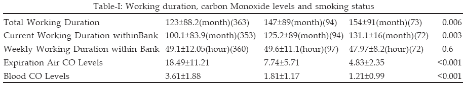 Methodology: This cross-sectional study was conducted between 2001 and 2002. Data was collected through questionnaire. The level of Carbon Monoxide (CO) and the percentage of Carboxihemoglobin (COHb) level in the blood were measured by using Bendfond Pico Smokerlyser. Chi-square and ANOVA were used.