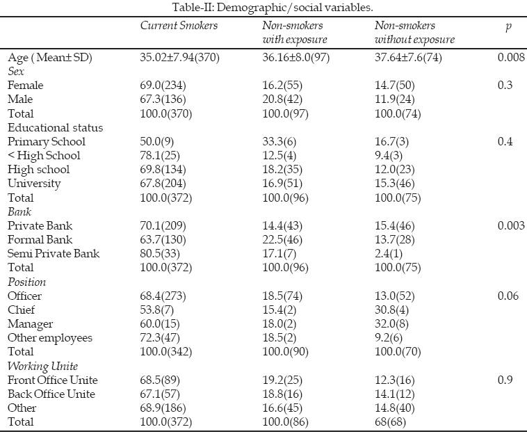 Objective: To assess the prevalence of smoking and the effects of passive smoking among bank employees.
