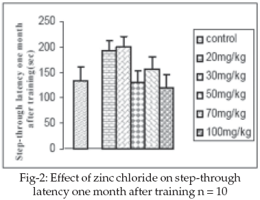 Many scientists in their investigations have shown that zinc doesn’t effect in long-term memory. That confirms our result in this research with 100mg/kg/day zinc chloride consumption.23,24 We hope to get accurate result by conducting extensive research into the function mechanism of this element on central nervous system.14REFERENCES