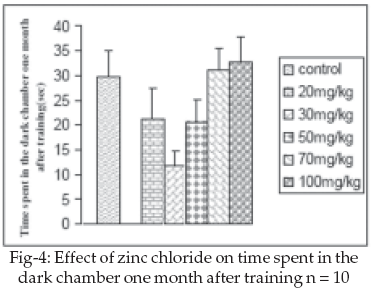 But 30 days after training, there was no significant difference between control group and any of groups where mothers received zinc chloride in different doses at the stage of gestation (Figure-4).