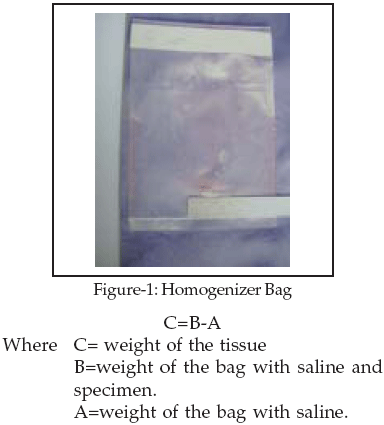 This bag was re-weighed. Weight of the tissue was obtained by subtracting the first weight from the second reading by formula