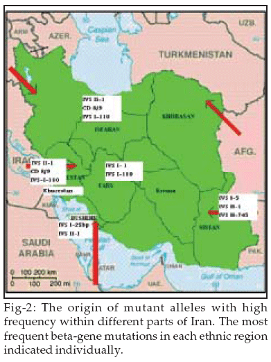 Iran is a country which has a population with a different ethnic identity and different languages. The people who live in different parts speak different languages, but the common language is Persian. As we saw mutation in ß-globin gene will lead to thalassemia. Although, all this mutations were found in coastline areas but their geographic distribution has special characteristic properties. In most parts of the world, a small number of thalassemia mutations predominant and the most common ones tend to be those that are geographically the most widespread and presumably also the oldest. For instance, in China and Southeast Asia, four alleles account for 91% of the genes