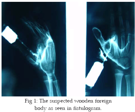Key Words: Metacarpal Bone, Wooden foreign body, Fistulogram.