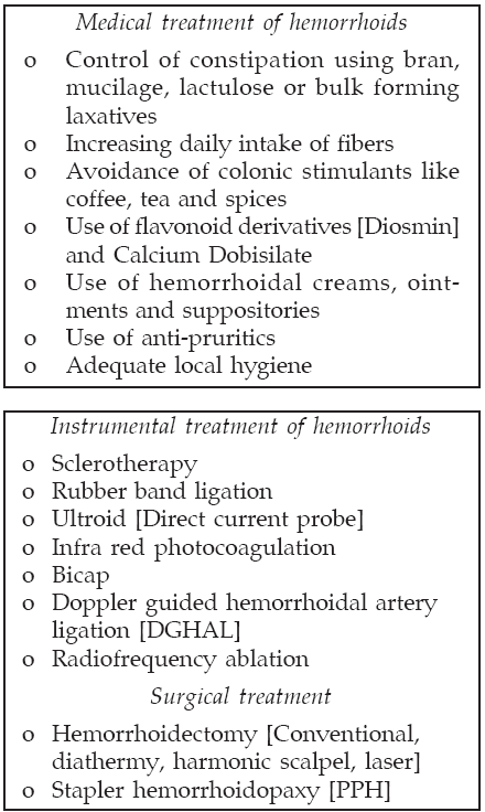 Treatment of Hemorrhoids: Hemorrhoids are one of the commonest conditions of the ano-rectum. They share their symptoms with a whole series of other diseases and it is this lack of specificity that calls for a thorough examination to reach a precise diagnosis.