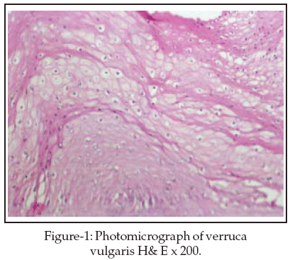 There was only a single case of benign lesion i.e. verruca vulgaris (Figure-1),