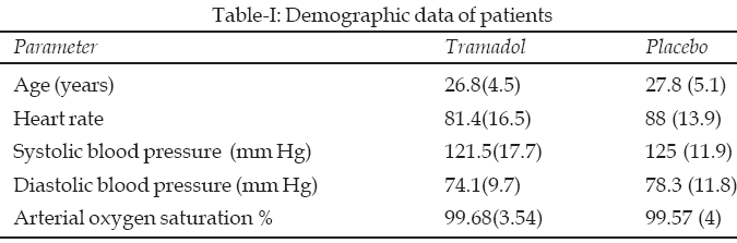 This study enrolled 90 women with ASA 1 and/or 2 who were divided into control and study groups. There were no significant differences among the two groups as regards average age, systolic and diastolic blood pressure, body temperature and heart rate (Table-I).