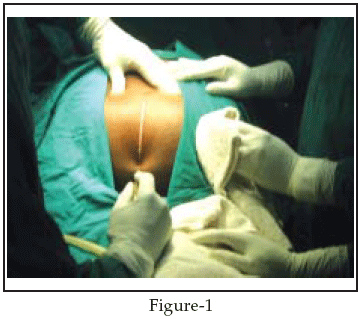 At exploratory laparotomy, a huge cyst occupying the entire abdomino-pelvic cavity with a smooth glistering surface was identified arising from the right ovary and attached by flimsy adhesions to the anterior aspect of the parietal peritoneum. The cyst had displaced bowel loops superiorly. The uterus, fallopian tubes and left ovary were normal. A total abdominal hysterectomy and bilateral salpingo-oophorectomy was done, commencing with oophorectomy of the massive right ovarian cyst and followed by total abdominal hysterectomy and salpingo-oophorectomy for the left ovary. The tumor was bisected post operatively and was found to be cystic and filled with yellow sebum mixed with hair. The uterus and both ovaries were sent for pathological examination. The post operative period was uneventful and she was discharged on the eighth post operative day.