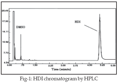 5 Air sampling was performed according to US National Institute of Occupational Safety and Health (NIOSH) method 5522 for isocyanate in air. Air samples were collected at 2 l/min using a midget impinger sampler (SKC, Eighty Four, PA) and personal sampling pumps calibrated before and after sampling with a Dry Cal DC-Lite primary flow meter (Bios International Co., Pompton Plains, NJ). A KNAUER HPLC was used for air analysis, the HPLC equipment consisted of a high-pressure pump, a variable-wavelength UV detector and a loop injector, HPLC columns were made of stainless steel (200 mm long x 5 mm in inside diameter) packed with 5 m Nucleosil C 18.5 The air concentrations of HDI was monitored continuously by the midget impinger instrument using a Dimethyl Sulfoxide with Tryptamine reagent and the sampling time for HPLC analyses was one hour at an air flow rate of 2 I/min. A GCMS-QP 1000 EI/CI equipped with a Shimadzu auto sampler (AOC-9) was used for metabolite analysis of Diisocyanates. For enrichment and evaporation of solvent, a vacuum desiccators connected to an aspirating pump was used the apparatus was equipped with an electrically heated oven that had been designed and manufactured at our laboratory for centrifugation of the samples.All the factories used general ventilation in the workplaces and the air sampling of HDI was done using the midget impinger instrument (SKC). Calibration was performed as recommended by the manufacturer. For air sampling, SIBATA mini pumps were used; 25-ml midget impingers containing 20 ml of the sample medium (Dimethyl Sulfoxide with Tryptamine) were employed. Temperature and relative humidity was measured by an Asman hygrometer and thermometers. Fifty workers were studied; Williams’ urine sampling method was used for the subjects.