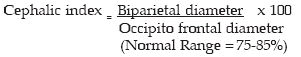 At times, when the fetal head may be short and wide (brachycephaly) or long and flattened (dolicephaly), the assessment of age from BPD will be under or over estimated. Therefore, if the shape of head appears brachycephalic or dolicephalic, the cephalic index is calculated; and if found to be outside the normal range, the head circumference should be used to estimate age.