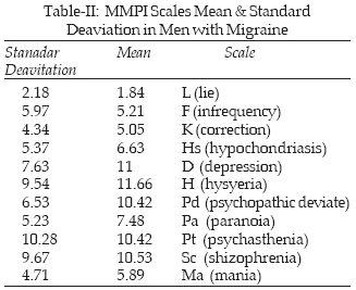 B. Men with migraine headaches report anxiety, psychasthenia and depressive symptoms. They typically look nervous, tense, sensitive and agitated (Table-II).