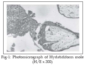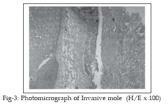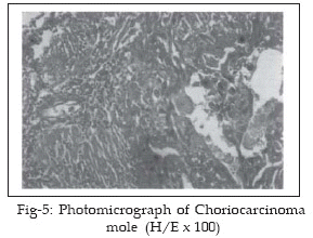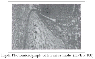 Results: Out of 1342 cases of endometrial curettage (EC) 242 cases of hydatidiform mole and 5 cases of choriocarcinoma were seen, whereas out of 1832 hysterectomy specimens, 9 cases of invasive mole were seen.