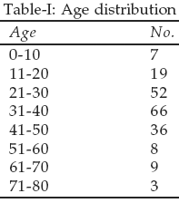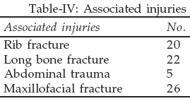 Total 200 patients were admitted with cranio-cerebral trauma and their mean age was 32.64 years (range, 4 years to 76 years). Majority of the patients were young adults (Table-I).