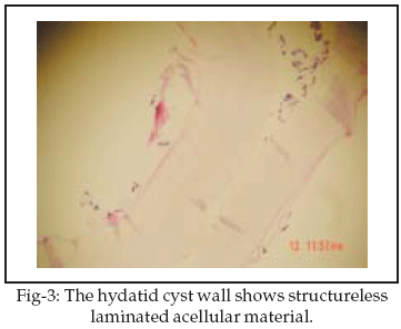 1,2 However,with increased travel,isolated cases can be seen anywhere in the world.1 Hydatid disease in humans is caused by tape-worms, Echinococcus granulosus, and the larval stage is known as the hydatid cyst.3 E.granulosus are most commonly seen in liver and lungs, it may also involve almost every organ or tissue in the body via the portal and systemic circulation.1,3 However, orbital infestation constitutes less than 1% of all hydatid disease cases.1,4-6CASE REPORT