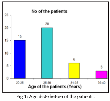 A total of 44 patients fulfilled the criteria to be included into the study. The mean age+SD of the patients were 26.3+5.8 years (20-40 years), Fig-1.