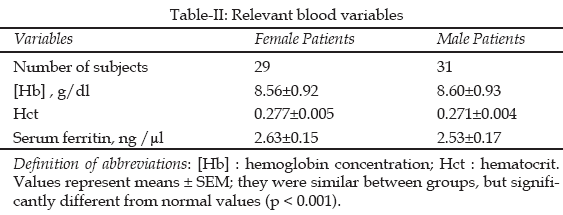 The study included 60 diagnosed patients of TM (10–45 years) randomly selected from our institution (Research Center of Thalassemia and Hemoglobinopathies, Ahwaz Jondishapour University of Medical Sciences, Ahwaz, Iran), whose physical characteristics are reported in Table-I. Patient with evidence