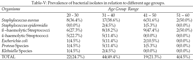 Also, the highest bacterial isolation was made from semen samples from individuals of age range 31-40 years while the least was among those within the age bracket 5160 years (Table-V).