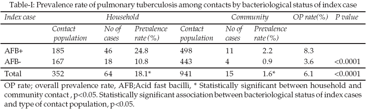 Objectives: To determine the prevalence of tuberculosis (TB) among the household contacts.