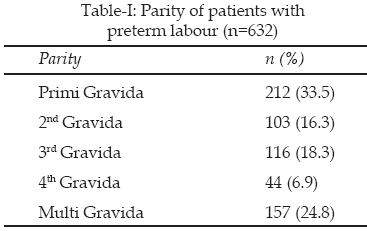 A total of 10,544 deliveries were recorded during the three years period. Total 887 women were admitted with the diagnosis of pre-term labour and out of them 632 were delivered (309 male and 323 female babies).